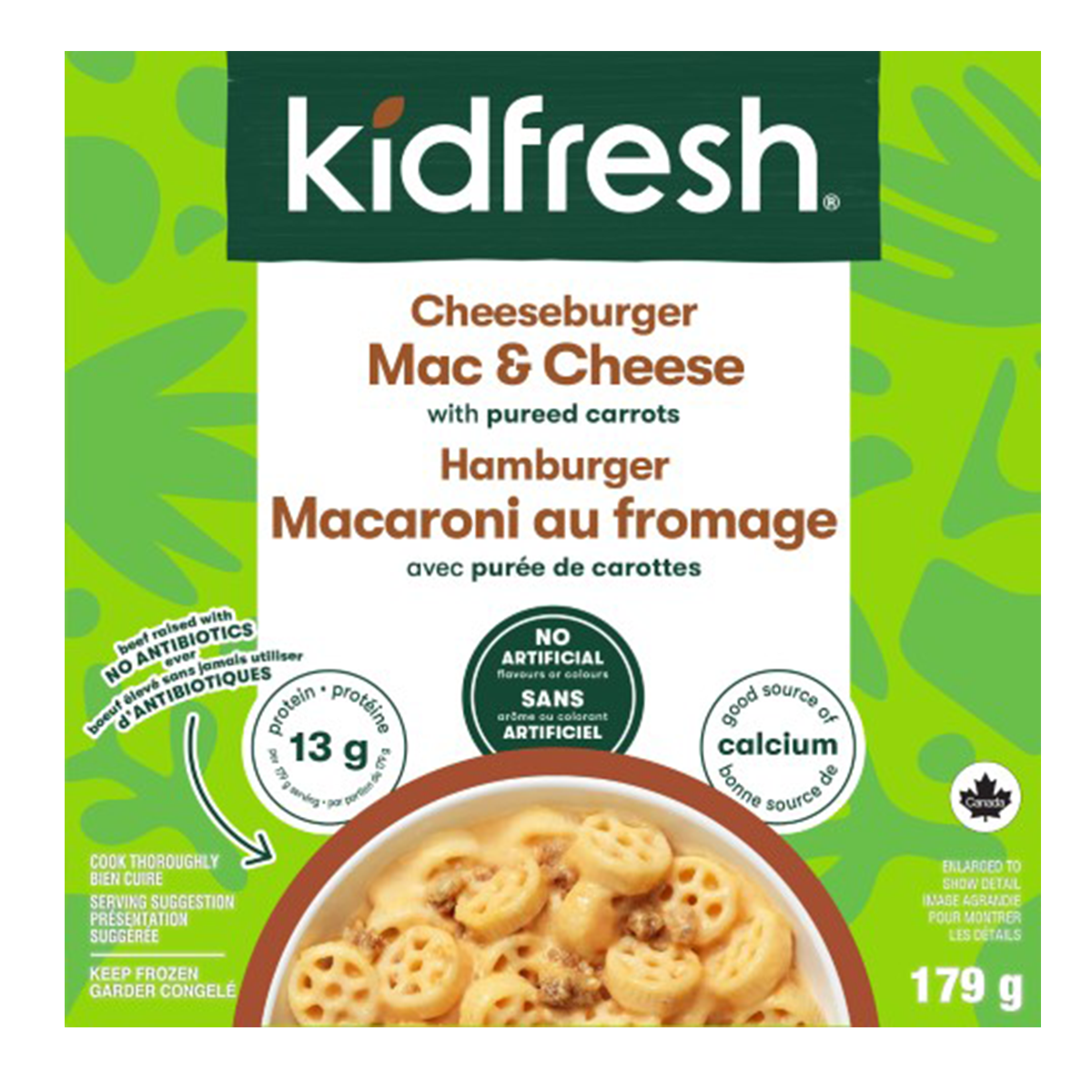 Pasta with cheddar cheese, cooked beef, and a blend of pureed carrots and cauliflower. Made with high-quality ingredients, including wagon wheel pasta and beef raised without antibiotics.