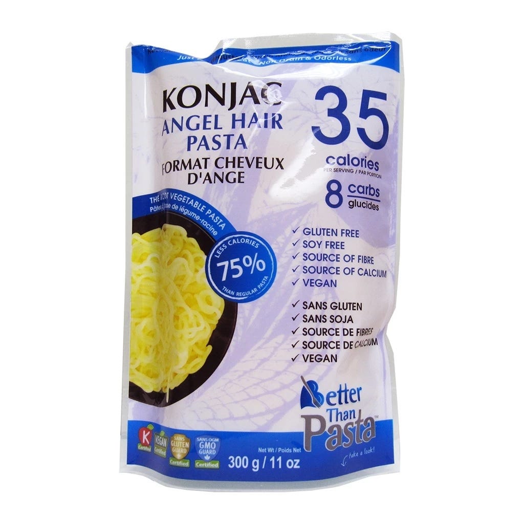 Though not yet well-known in North America, Konjac is a root vegetable that's been eaten for centuries in Asia. It's high in fibre, and low in calories (just 10 per serving, or 30 for the entire package), with no fat, carbs, sodium, or sugar. Konjac has a low Glycemic Index, so it's also suitable for diabetics.
