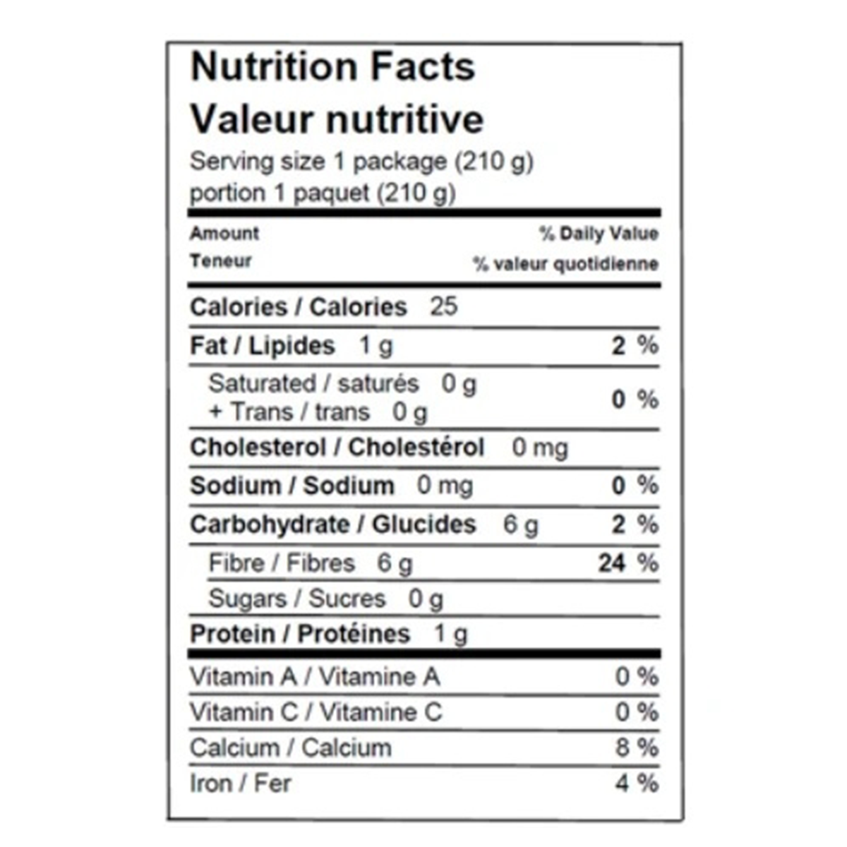 The same amount of NuPasta has 25 calories and 6g of fibre. Made with the root of the konjac plant and soybeans (non-GMO).