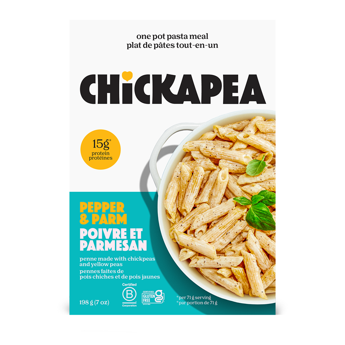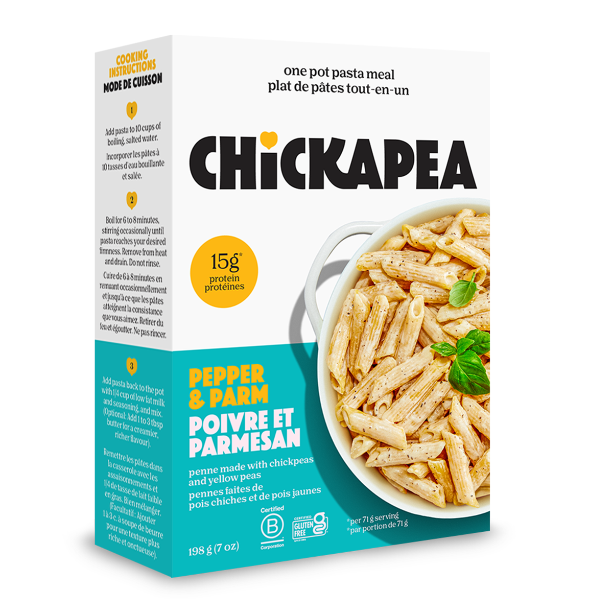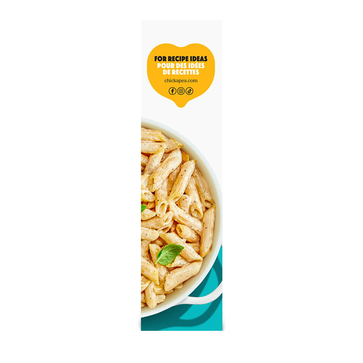 We took the classic cacio e pepe but upped the protein and the convenience. Get comfort in a pot with our classic penne, made with chickpeas and yellow peas, covered in a cheesy, peppery cream sauce.