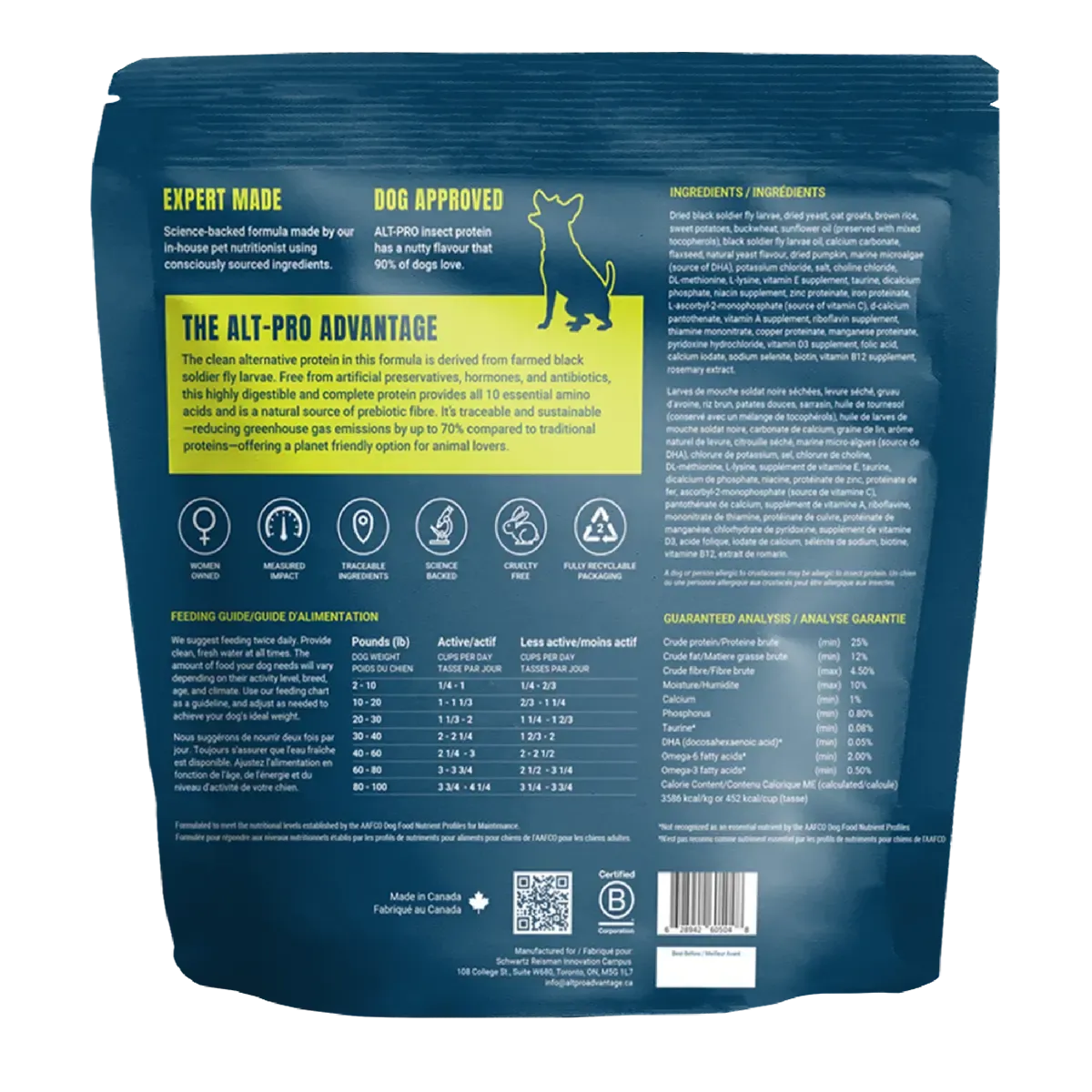 ALT-PRO Advantage Nutrient-Rich Daily Recipe is formulated to meet the nutritional levels established by the AAFCO Dog Food Nutrient Profiles for Maintenance.