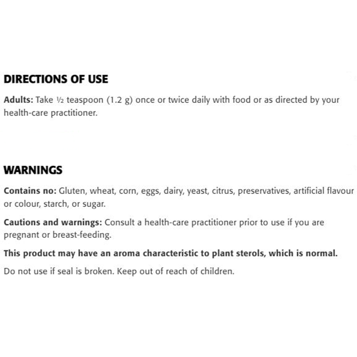 This product may have an aroma characteristic to plant sterols, which is normal.