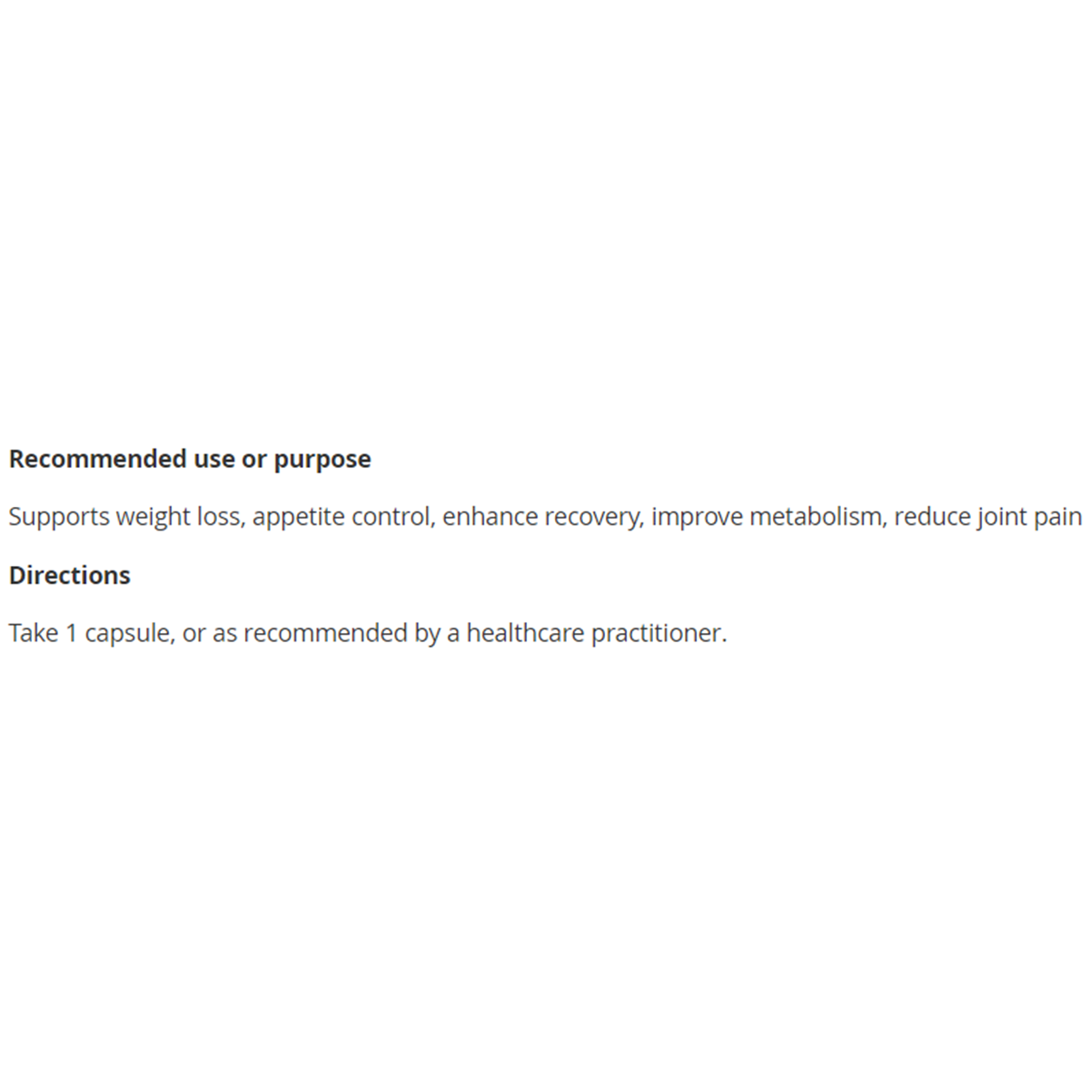 Supports weight loss, appetite control, enhance recovery, improve metabolism, reduce joint pain