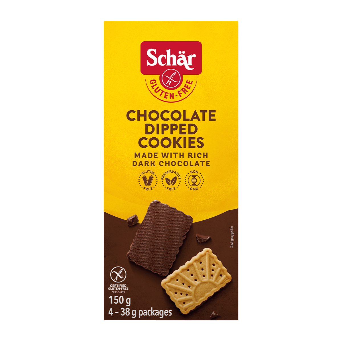 These crisp and delightful butter cookies are imported from Europe, dipped in rich German Chocolate and topped with a sprinkle of sea salt - perfect pairing with your afternoon coffee. Only the finest European, non-gmo, gluten-free and preservative-free ingredients are used for Schar products!