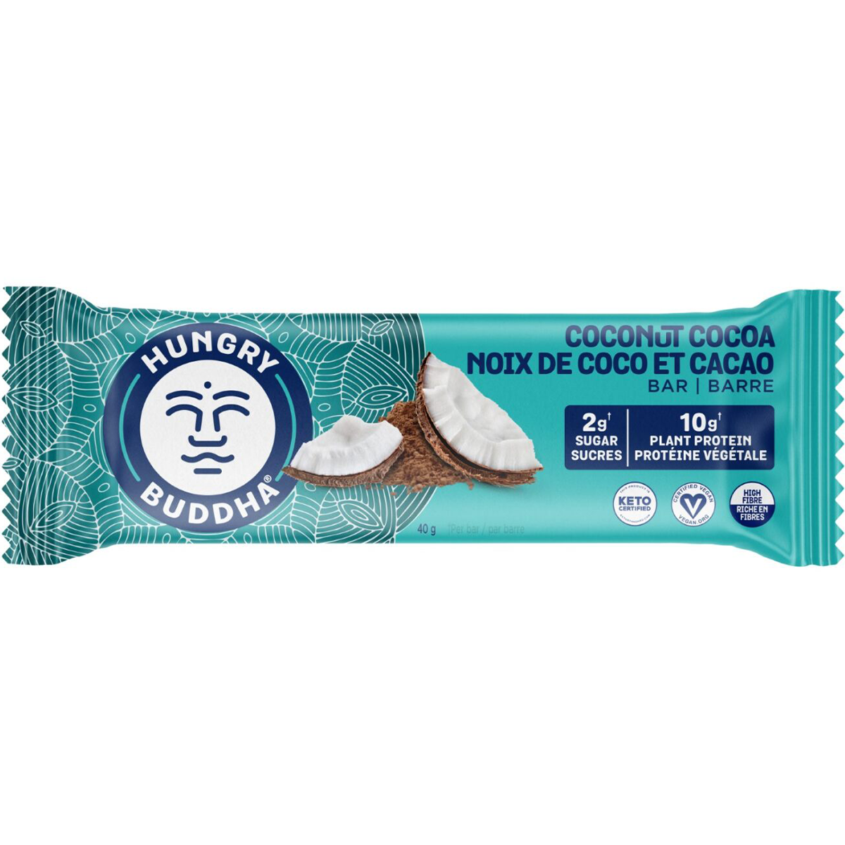 The Hungry Buddha Keto Bar is a Keto-friendly, coconut-based bar, with cocoa chocolate flavour.
