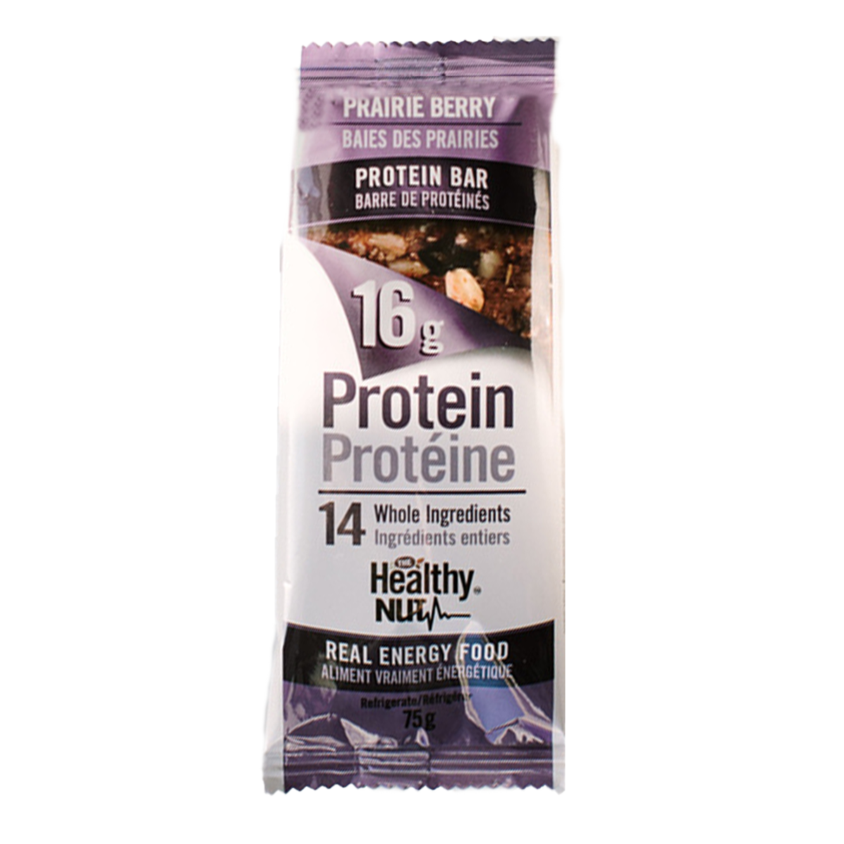The Prairie Berry protein energy bar is made with peanut butter and the key ingredient, fresh Saskatoon berries. Saskatoon berries are known as a superfood sensation, packed with phelonics, anthocyanins and 8 vitamins and minerals.
