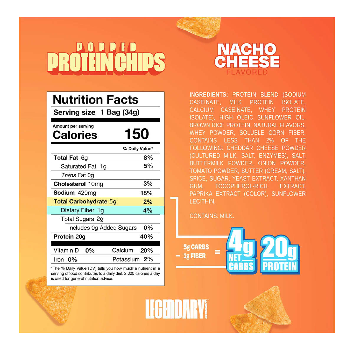 Legendary Foods Popped Protein Chips Nacho Cheese 34g