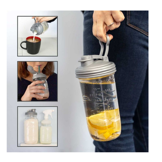 reCAP Mason Jar Pour Lid with Fold-out Carry Loop in Silver