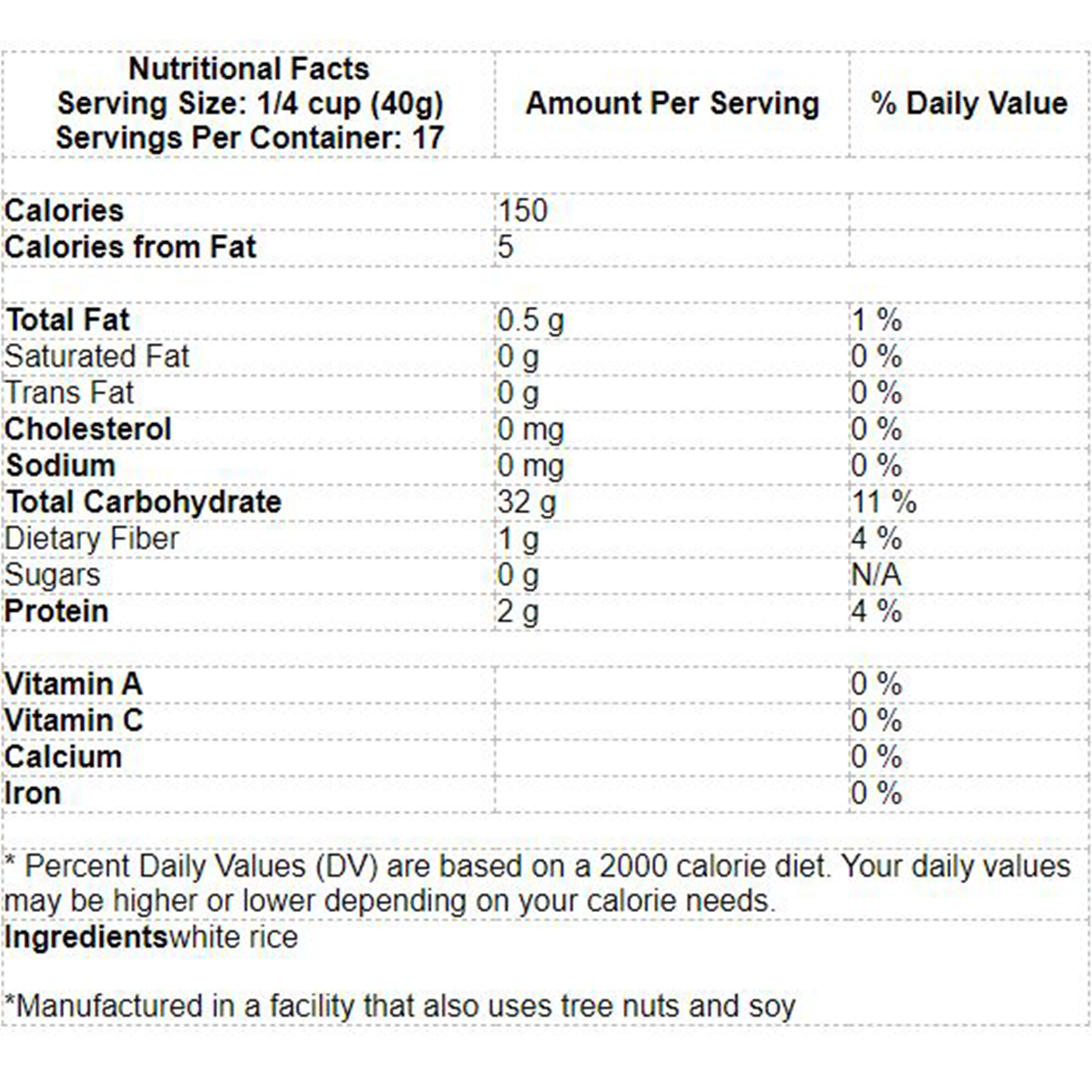 White rice flour is naturally gluten-free, rich in carbohydrates and low in fat. White rice flour can be used to bake cakes, cookies, dumplings, breads and more, as well as thicken sauces and coat fish and other proteins. It is also very popular for the preparation of a variety of Asian noodles, which are a staple in Eastern cuisine.