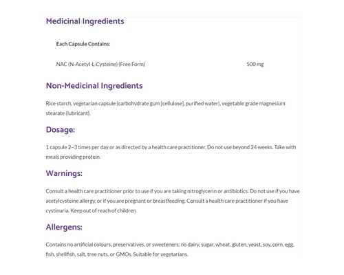 • 500 mg NAC per capsule allows for easy and therapeutic dosing levels