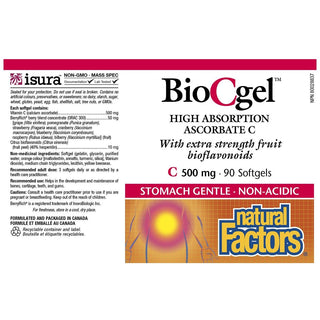 Natural Factors Bio C Gel High Absorption Ascorbate C 500mg 90 Softgels