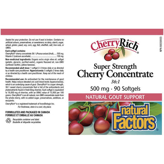 Natural Factors Cherry Rich Cherry Concentrate Super Strength 500mg 90 Softgels