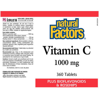 Natural Factors Vitamin C 1000mg Plus Bioflavonoids & Rosehips 360 Tablets