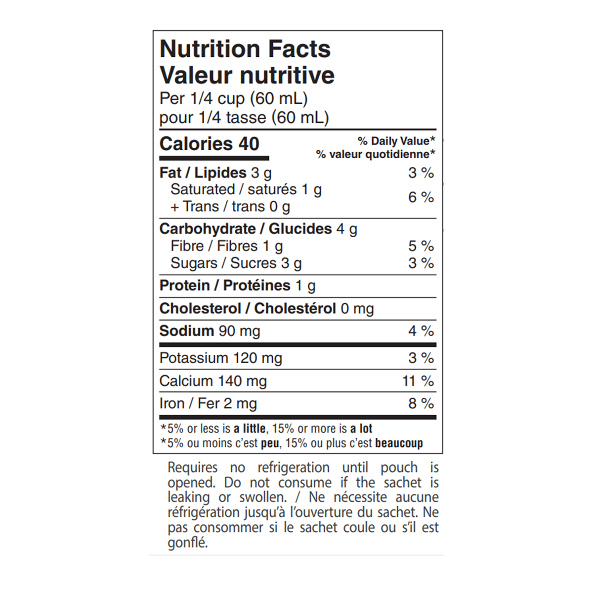 Requires no refrigeration until pouch is opened. Do not consume if the sachet is leaking or swollen..