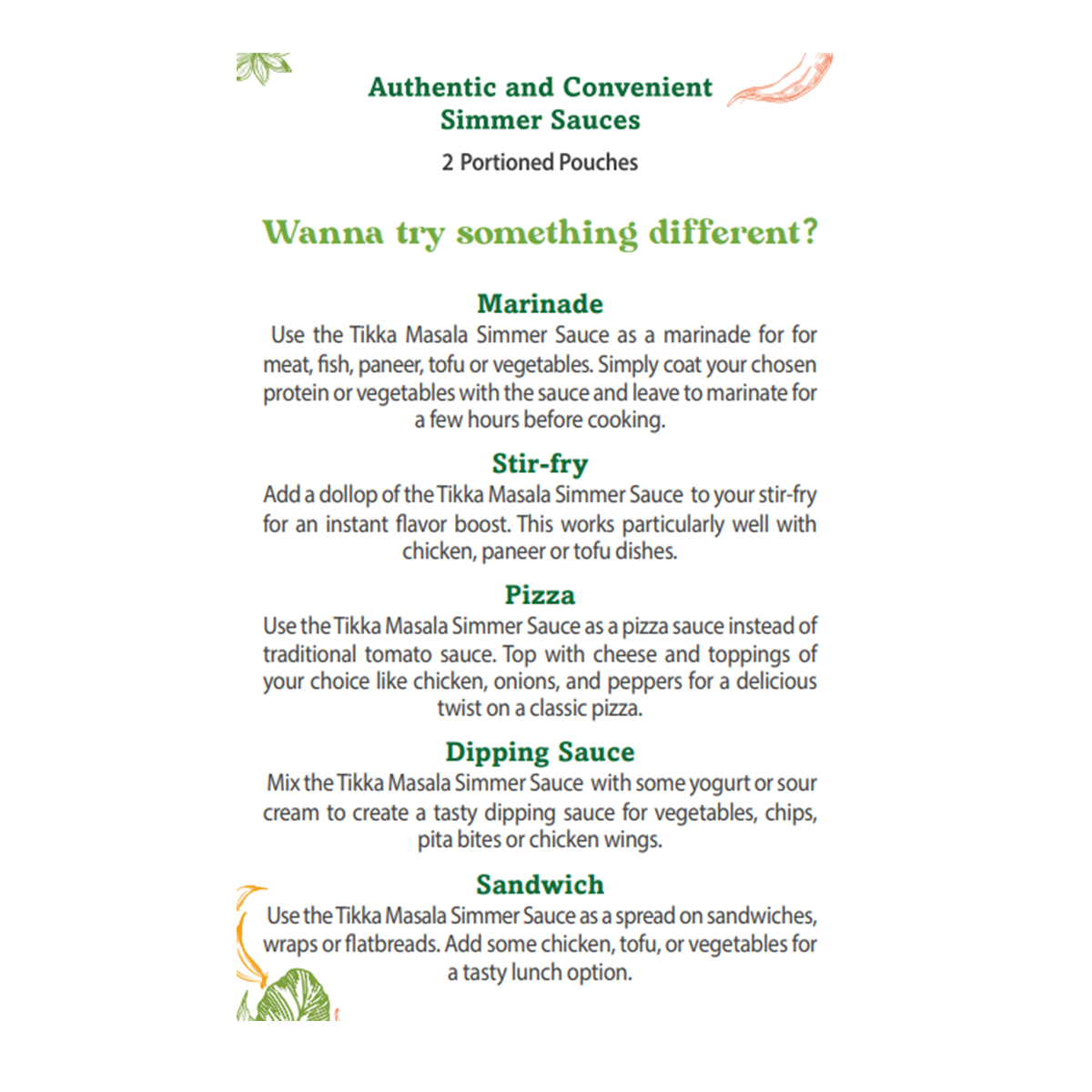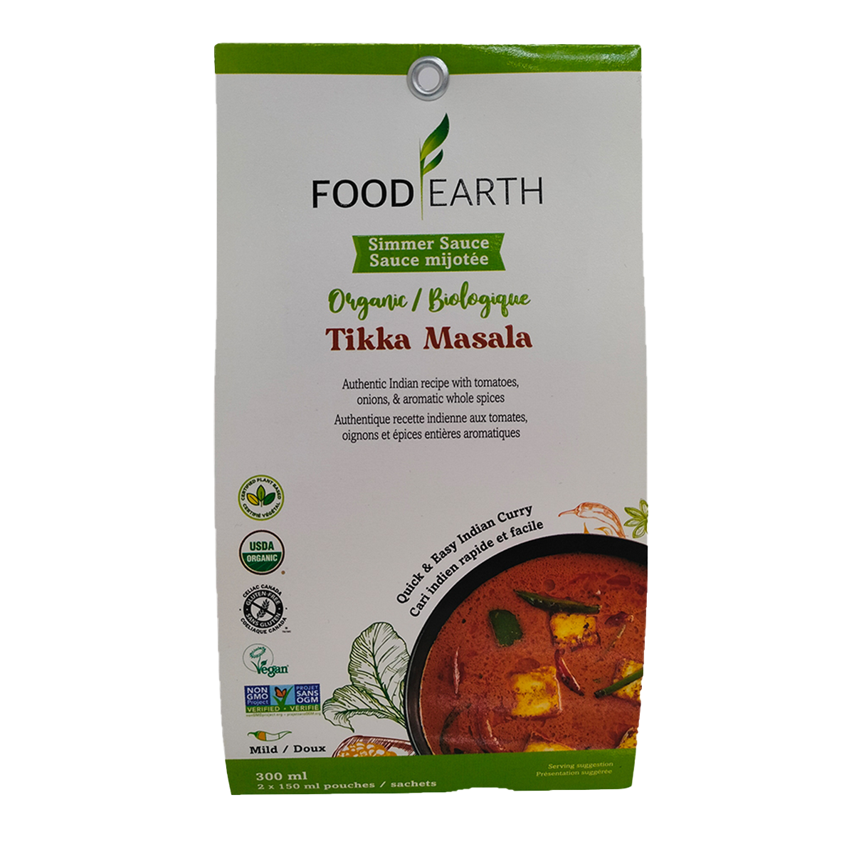 One pouch of Food Earth Simmer Sauce + ½ lb (227 g) of protein or vegetables of your choice: