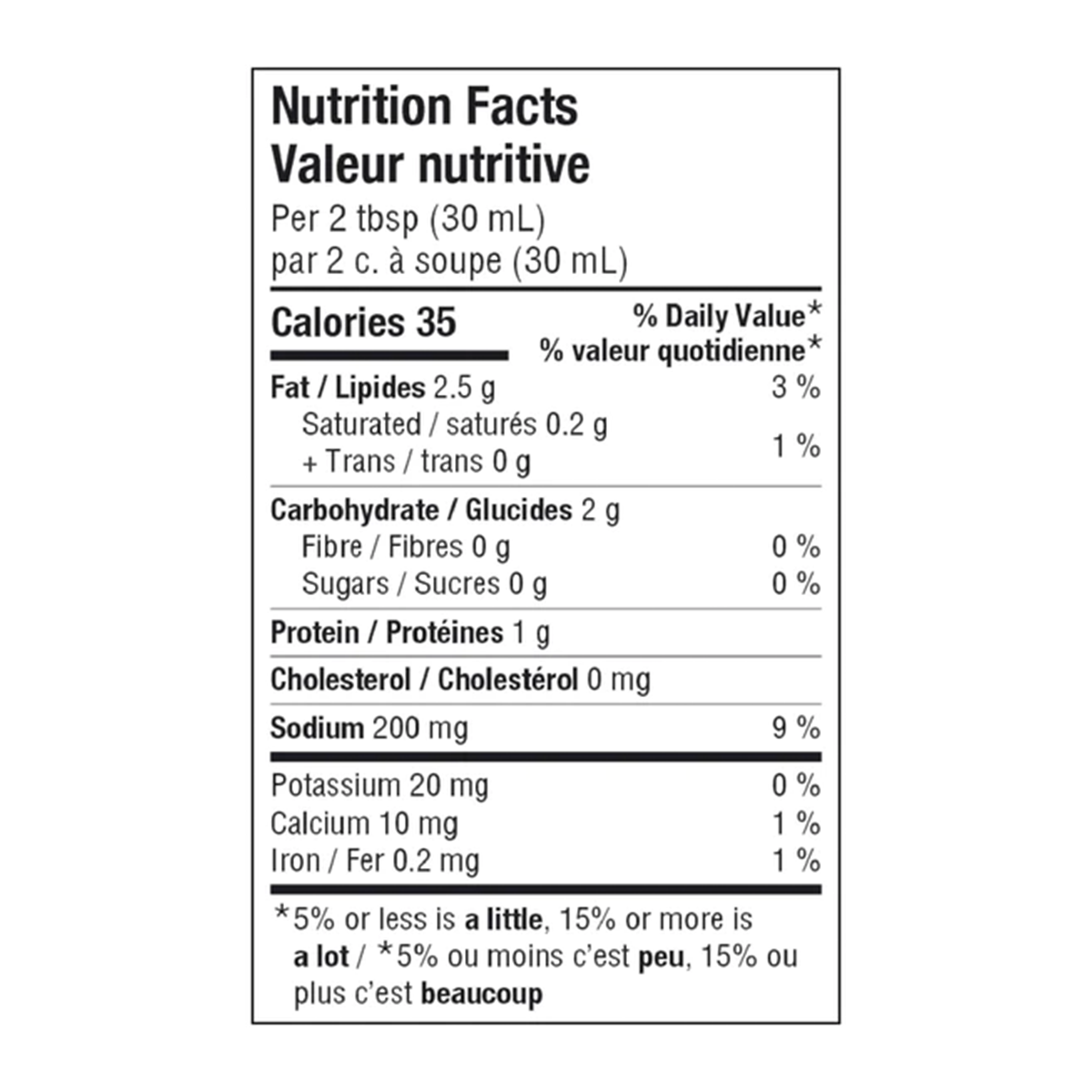 Saturated/saturés 0.2 g + Trans/trans 0 g