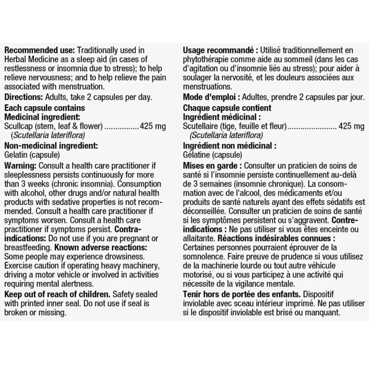 Nature's Way Scullcap Herb is traditionally used in herbal medicine as a Restful-Restful-Sleep aid, in cases of restlessness or insomnia due to stress. It also helps to relieve nervousness and to relieve the pain associated with menstruation.