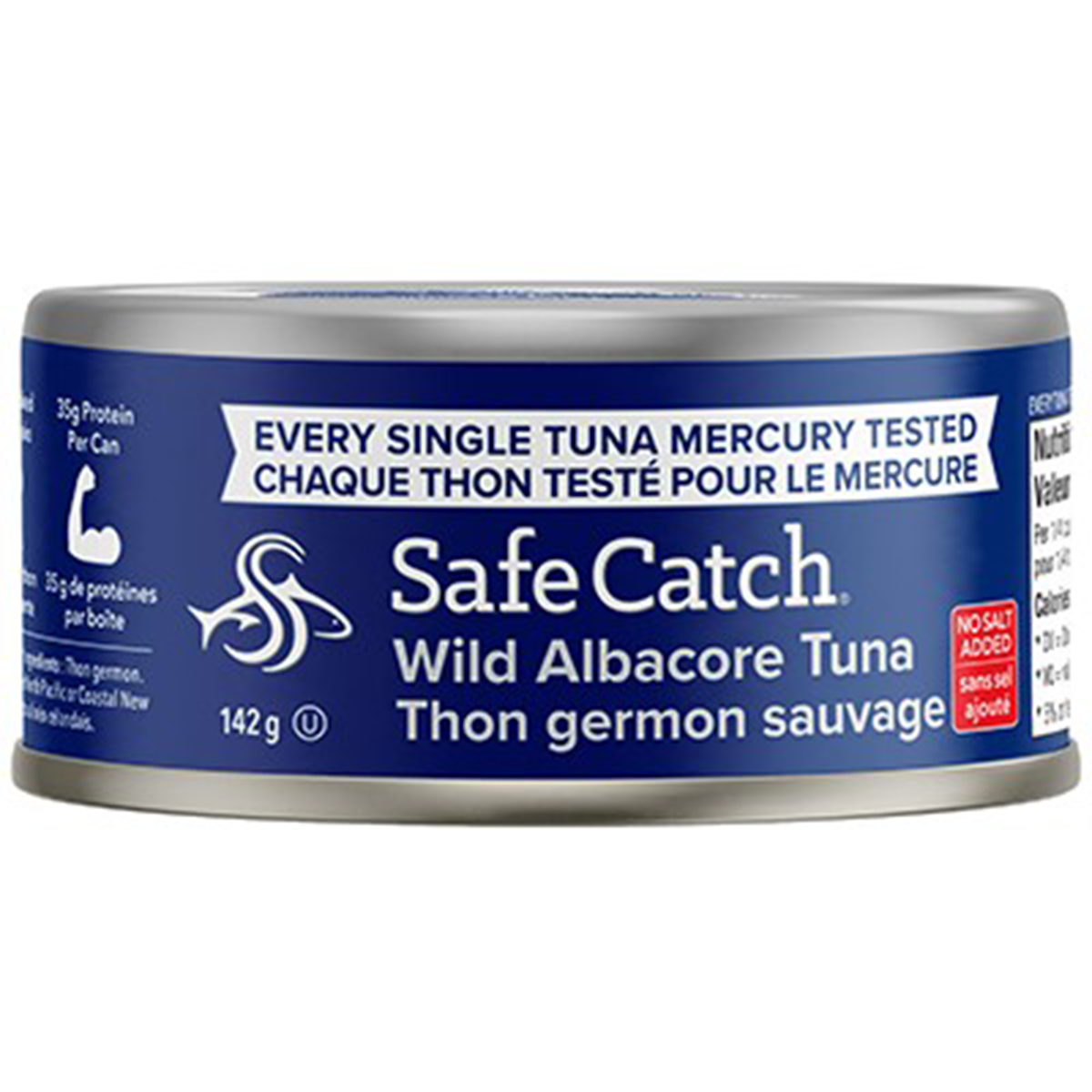 Safe Catch Albacore Tuna has the lowest mercury limit of any Albacore brand. With no salt added and only 20mg of naturally occurring sodium, this makes it the lowest salt tuna from Safe Catch. Each hand picked premium wild Albacore tuna is tested. Then later hand packed and slow cooked to perfection to retain all the Omega 3 oils and flavours. No added oil, water, fillers preservatives or broth. Just pure wild tuna! Just empty the can into a bowl and mix together so the tuna reabsorbs any natural oils that has settled.