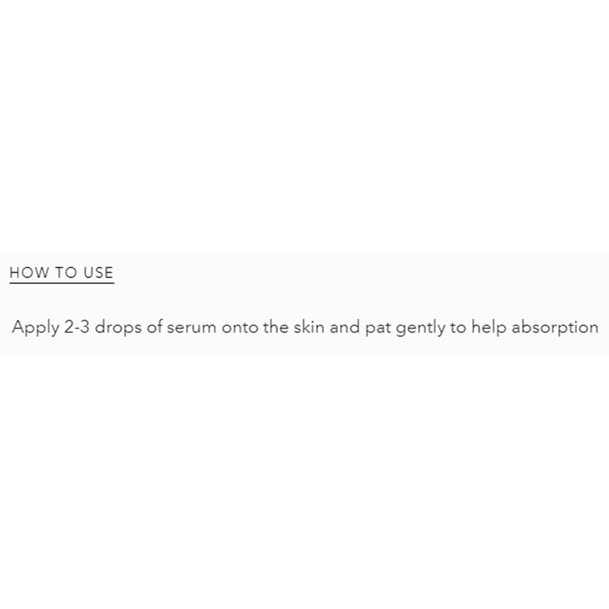 Apply 2-3 drops of serum onto the skin and pat gently to Assist absorption
