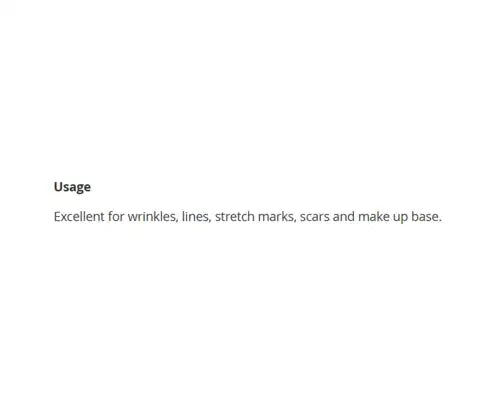 Excellent for wrinkles, lines, stretch marks, scars and make up base.