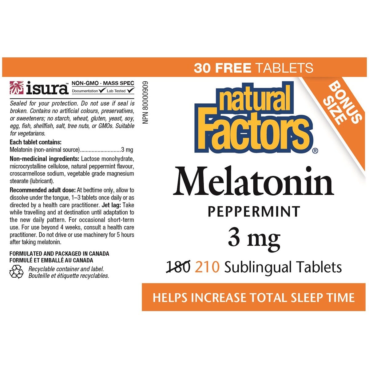 Natural Factors Melatonin 3mg Peppermint 210 Tablets