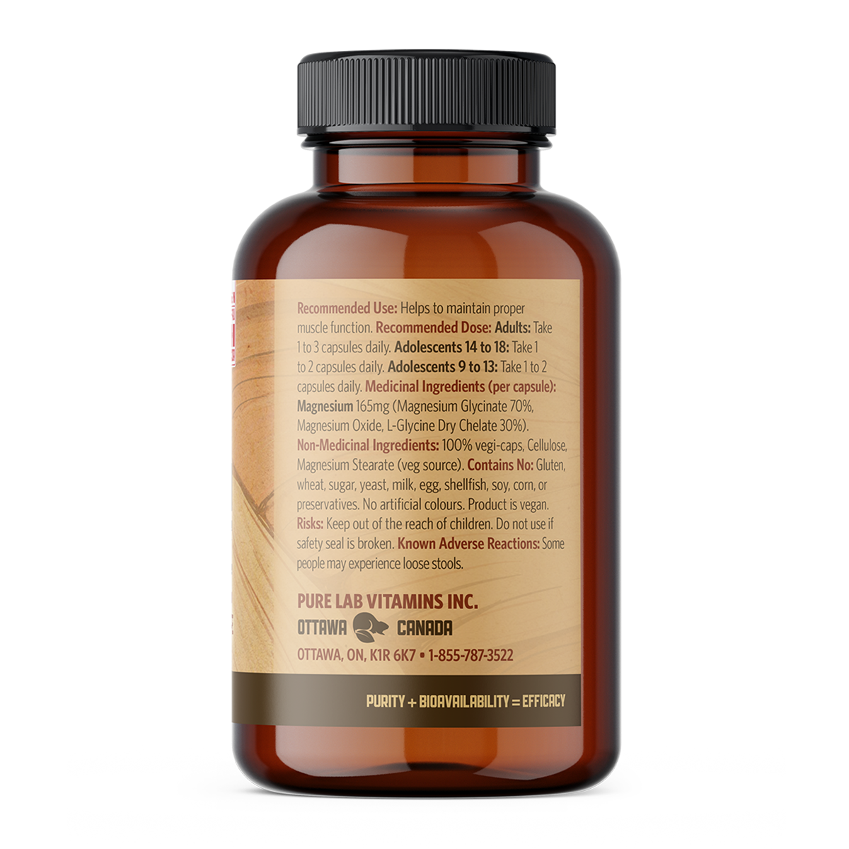 Magnesium 165mg (Magnesium Glycinate 70%, Magnesium Oxide, L-Glycine Dry Chelate 30%).