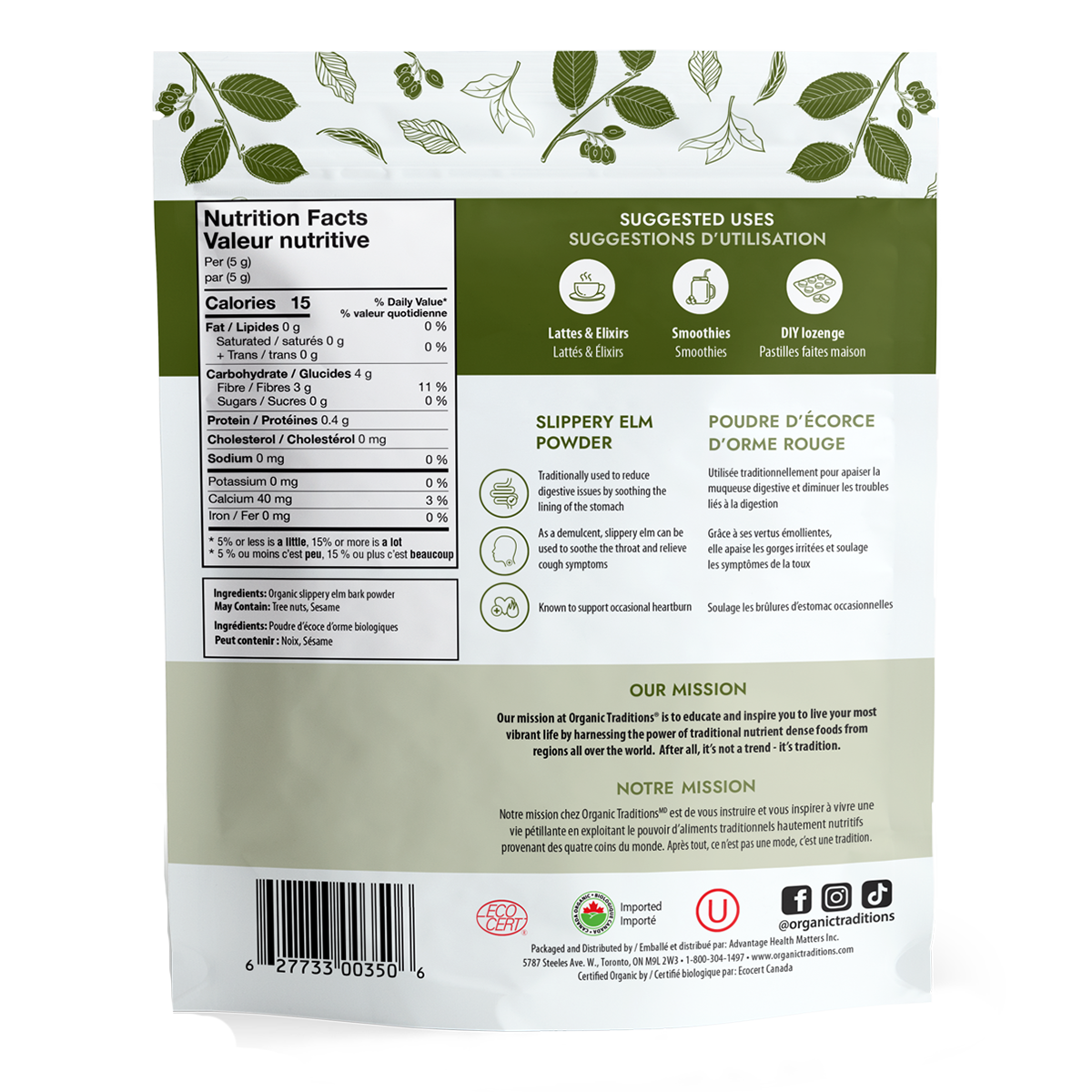 The bark is highly mucilaginous, providing a soothing coating for irritated mucous membranes.