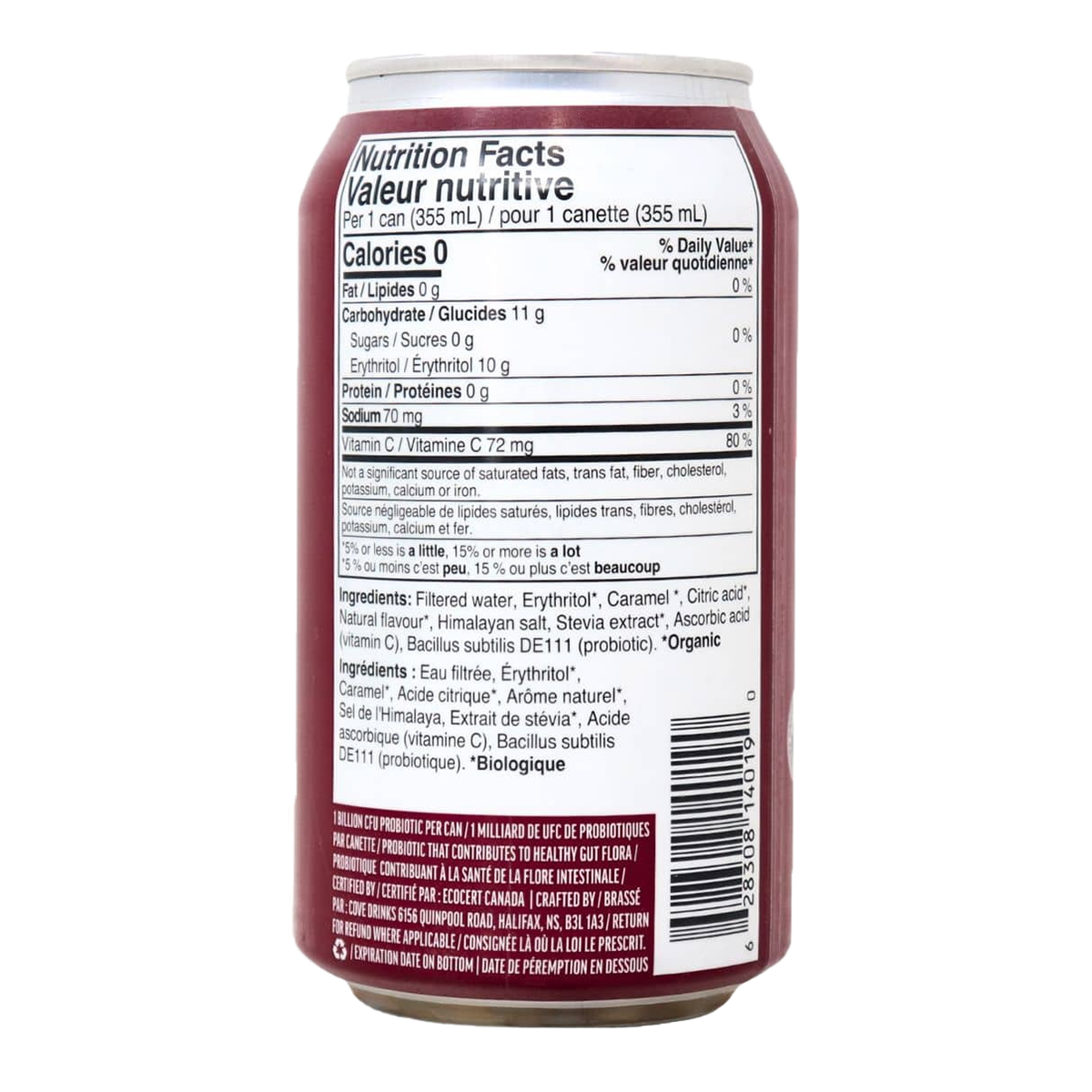 Filtered water, Erythritol*, Caramel, Citric acid*, Natural flavour*, Himalayan salt, Stevia extract, Ascorbic acid (vitamin C), Bacillus subtilis DE111 (probiotic).
