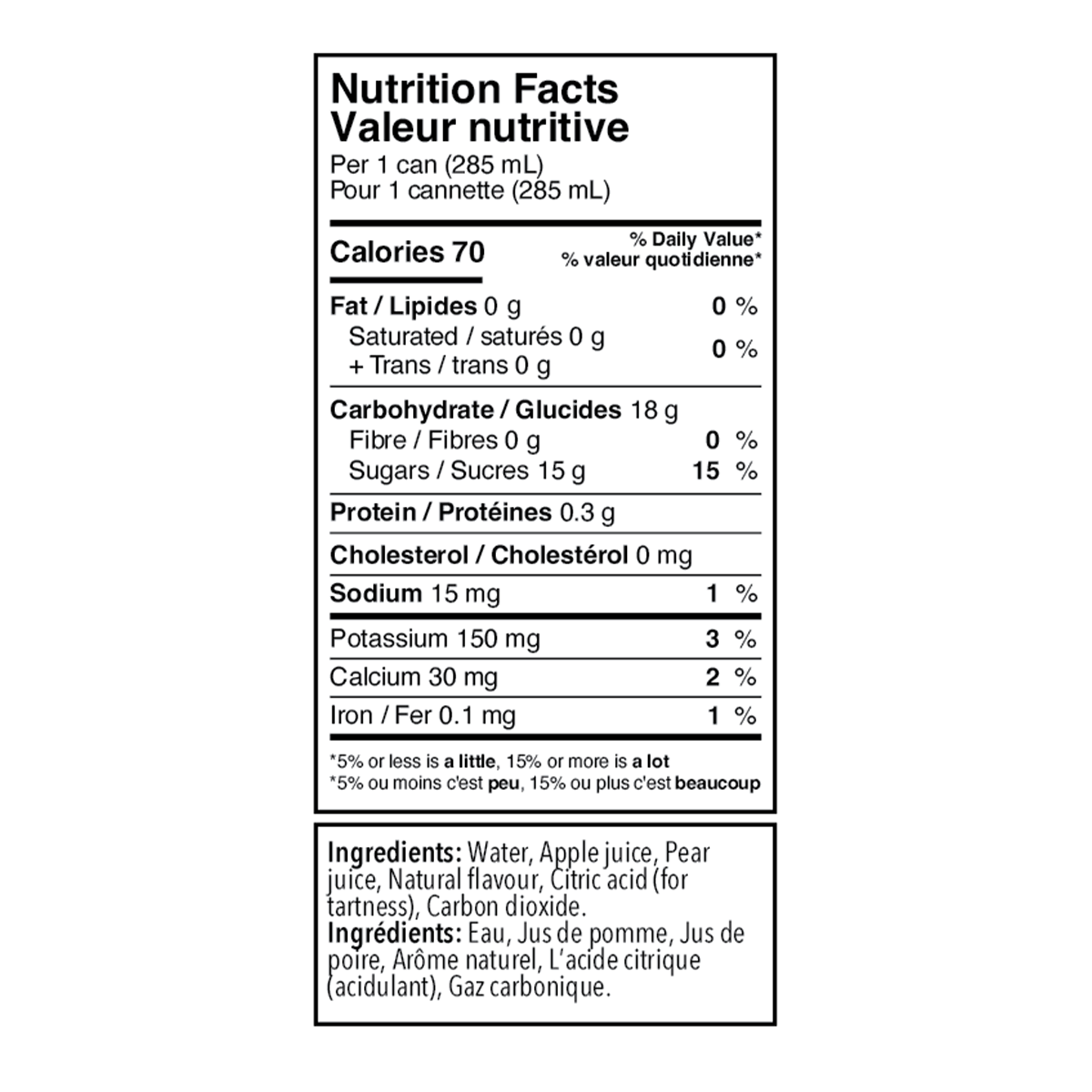 Water, Apple juice, Pear juice, Natural flavour, Citric acid (for tartness), Carbon dioxide.