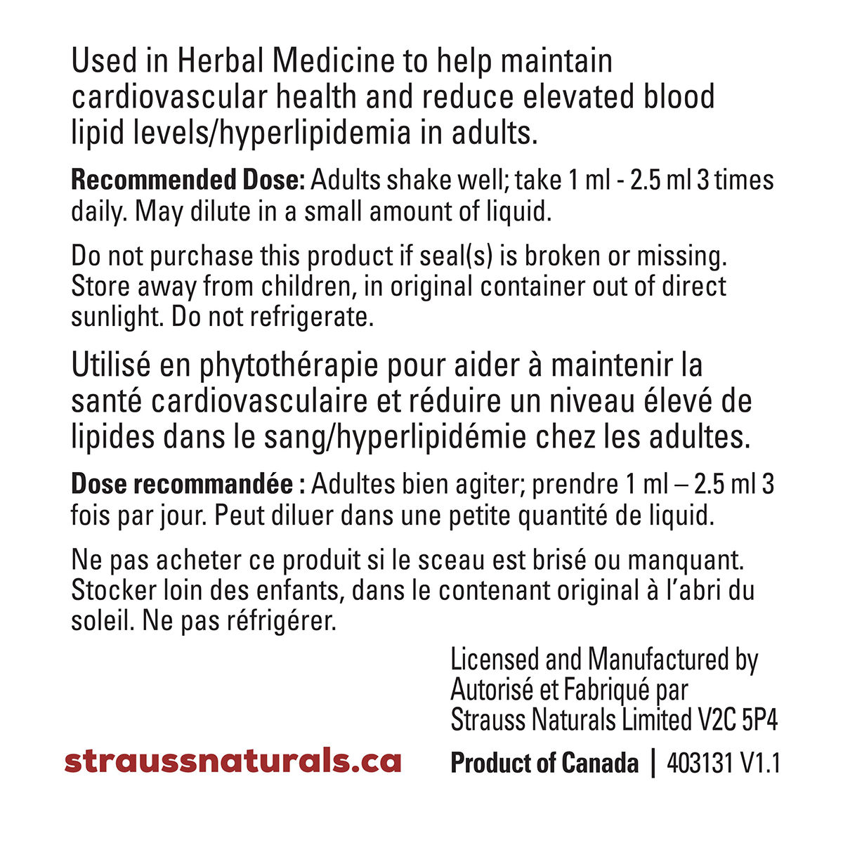 This original formula, built on generations of traditional herbal knowledge, and crafted by the Strauss family’s unique methods that combines Aged Garlic Extract (AGE) with extracts of seven other herbs in a proprietary process. Garlic has been used in Herbal Medicine to Assist reduce elevated blood lipid levels (hyperlipidemia) and Assist maintain cardiovascular health in adults. Herbal Extract Leaf, Flower and Fruit are used in Herbal Medicine to Assist Aid cardiovascular health in adults. Also contains extracts of herbs like European Mistletoe Leaf, Motherwort Herb Top, Bilberry Leaf, White Willow Bark, and Cayenne Fruit.