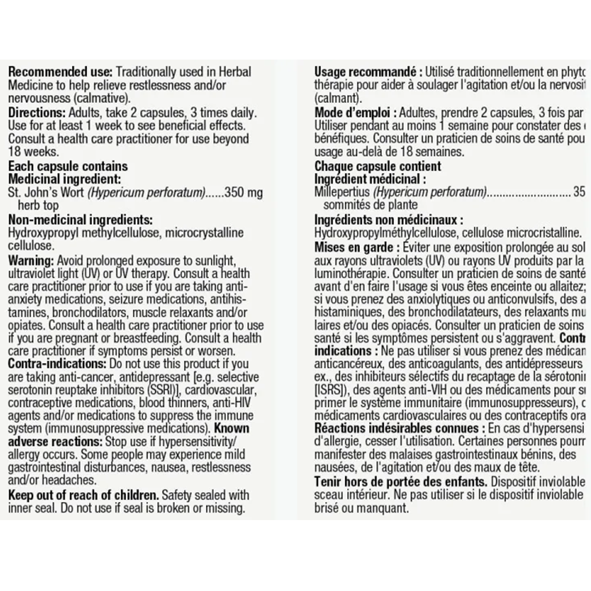Nature's Way St. John's Wort is traditionally used in Herbal Medicine to Assist relieve restlessness and/or nervousness (calmative). Nature's Way St. John's Wort is Vegetarian and Non-GMO Project Verified.