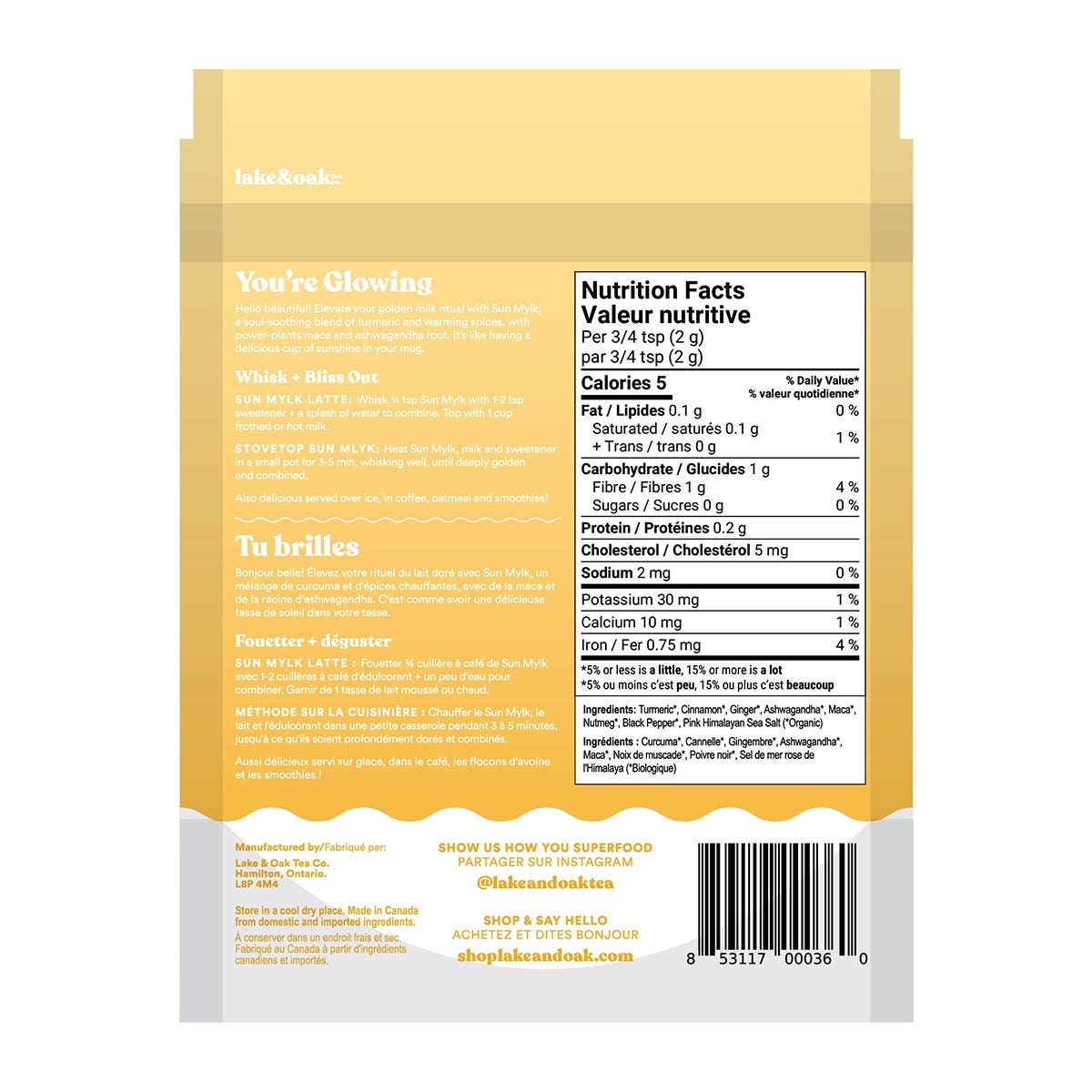 Lake & Oak Tea Co. Superfood Turmeric Latte Sun Mylk 70g