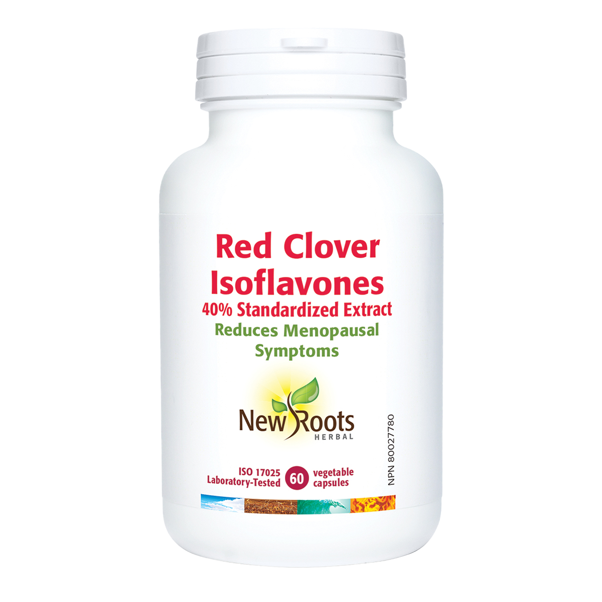 New Roots Herbal’s Red Clover Isoflavones are standardized to contain a total of 24 mg of four standardized isoflavones—genistein, daidzein, formononetin, and biochanin—sourced from red clover (Trifolium pratense). These biologically active isolates are naturally occurring in red clover.