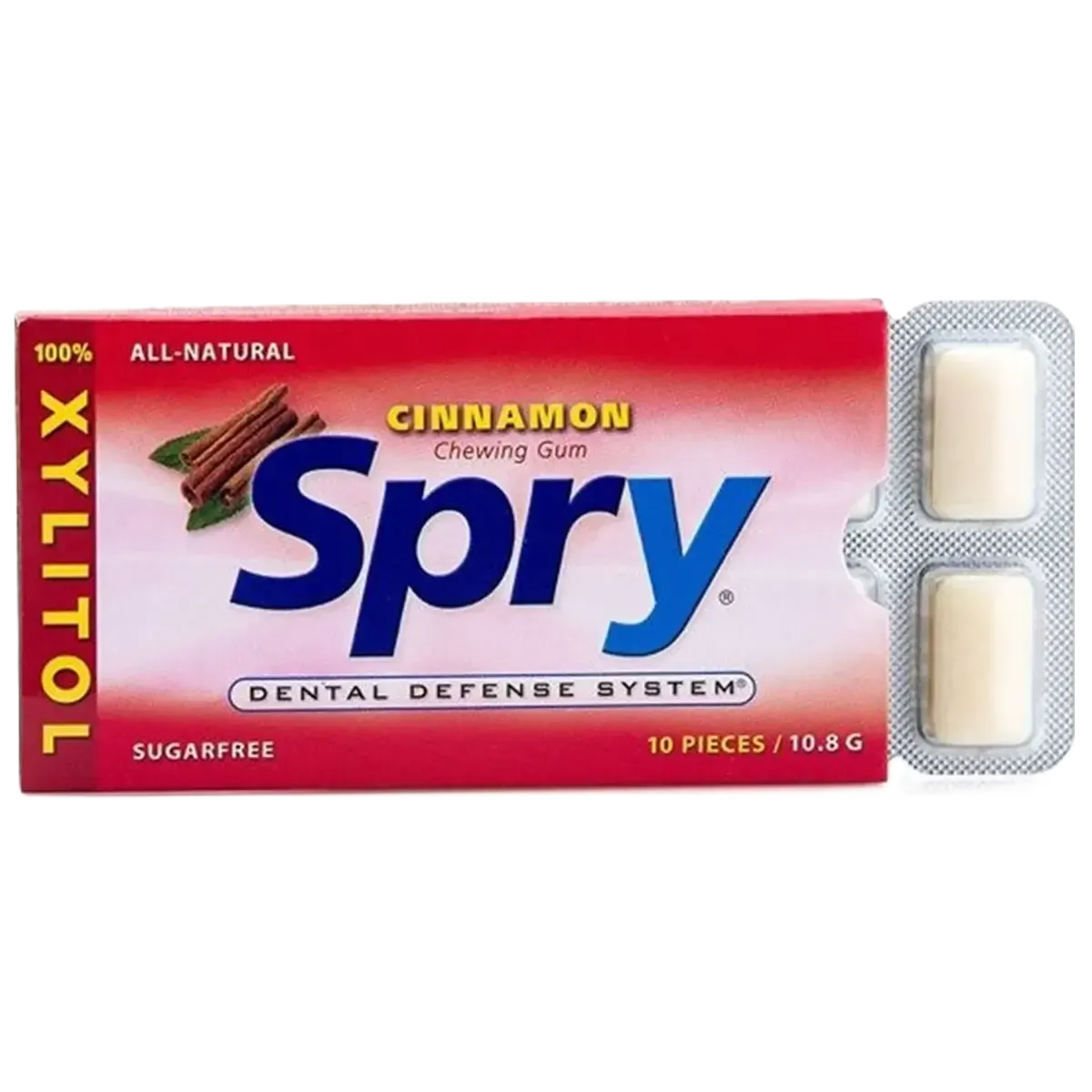 Chew Spry xylitol gum, or a combination of other xylitol products in the Spry Dental Defense product line, at least five times throughout the day.
