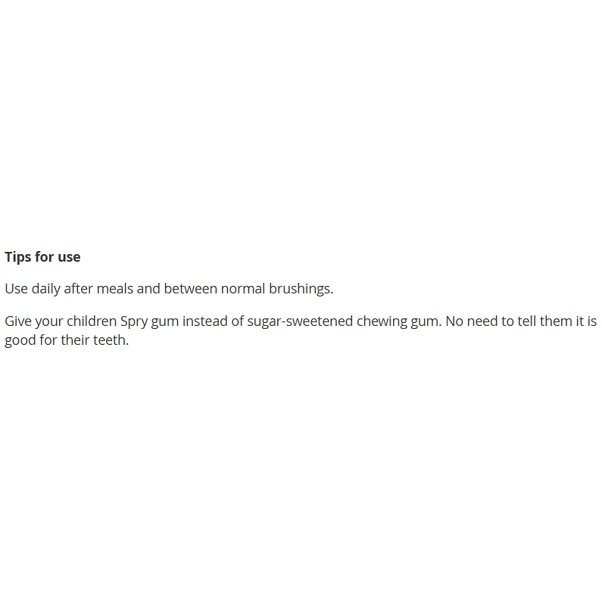 Spry sugar-free gum is sweetened with xylitol—a natural sweetener. Xylitol doesn’t allow bacteria to stick to teeth. This unique quality means that the bacteria can’t colonize in the mouth. Therefore, they can’t thrive and produce their bi-product, acid, which is the main cause of tooth decay and cavities.