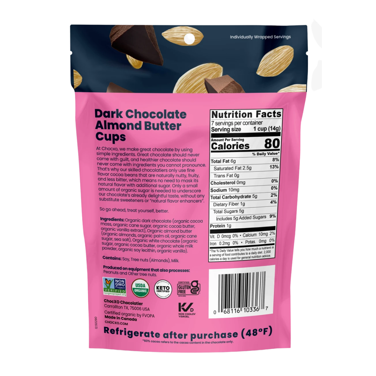 ChocXO Almond Butter Cups Dark Chocolate 98g
