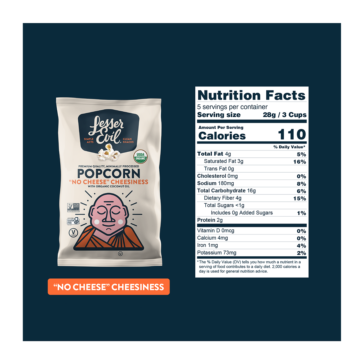 Lesser Evil Popcorn No Cheese Cheesiness 140g