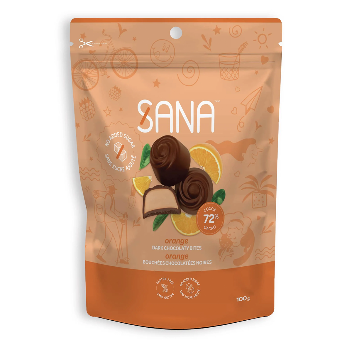 Sana Dark Chocolaty Bites Orange 72% Cocoa 100g