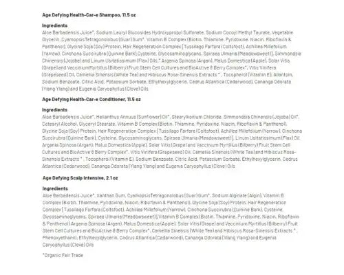 Age Defying Shampoo: Apply to wet hair, massage to clean and exfoliate scalp. Rinse thoroughly.