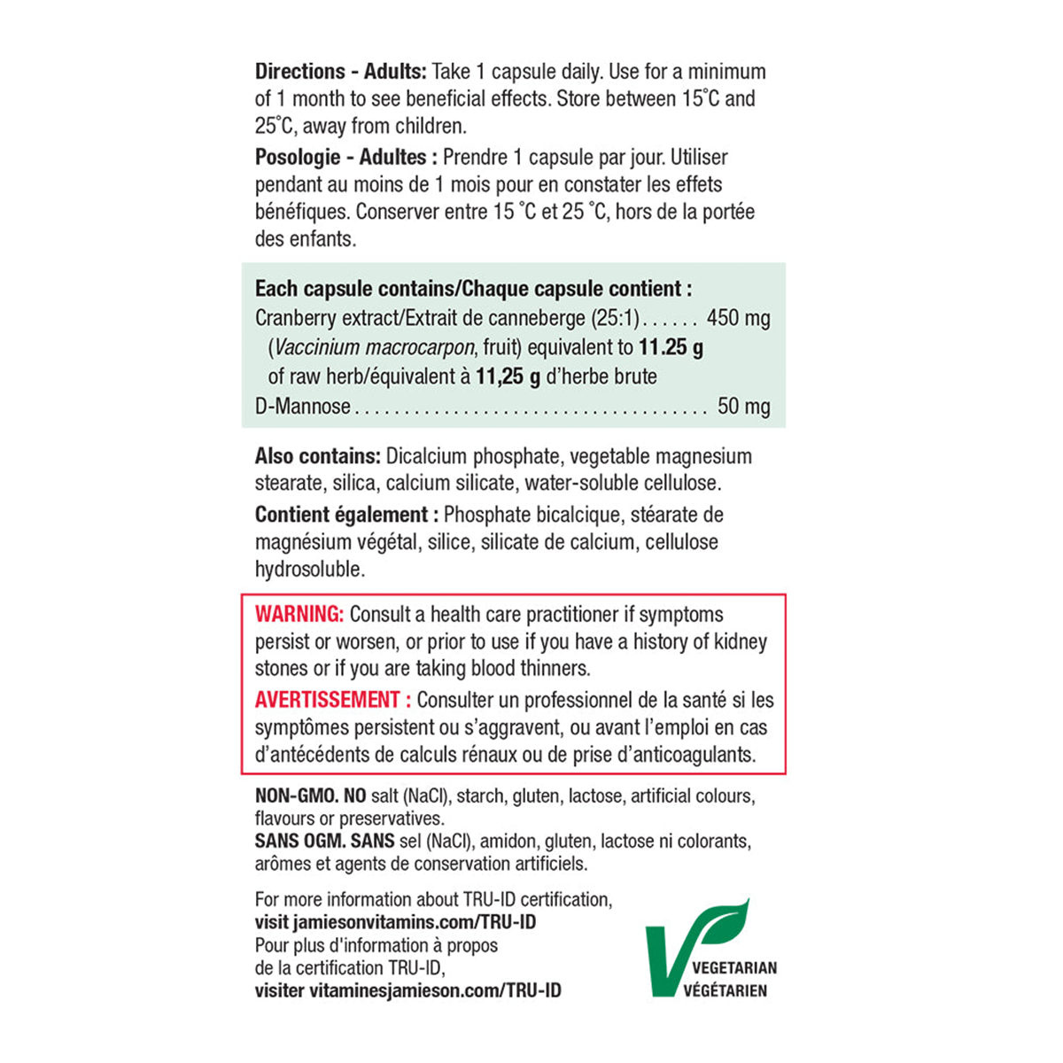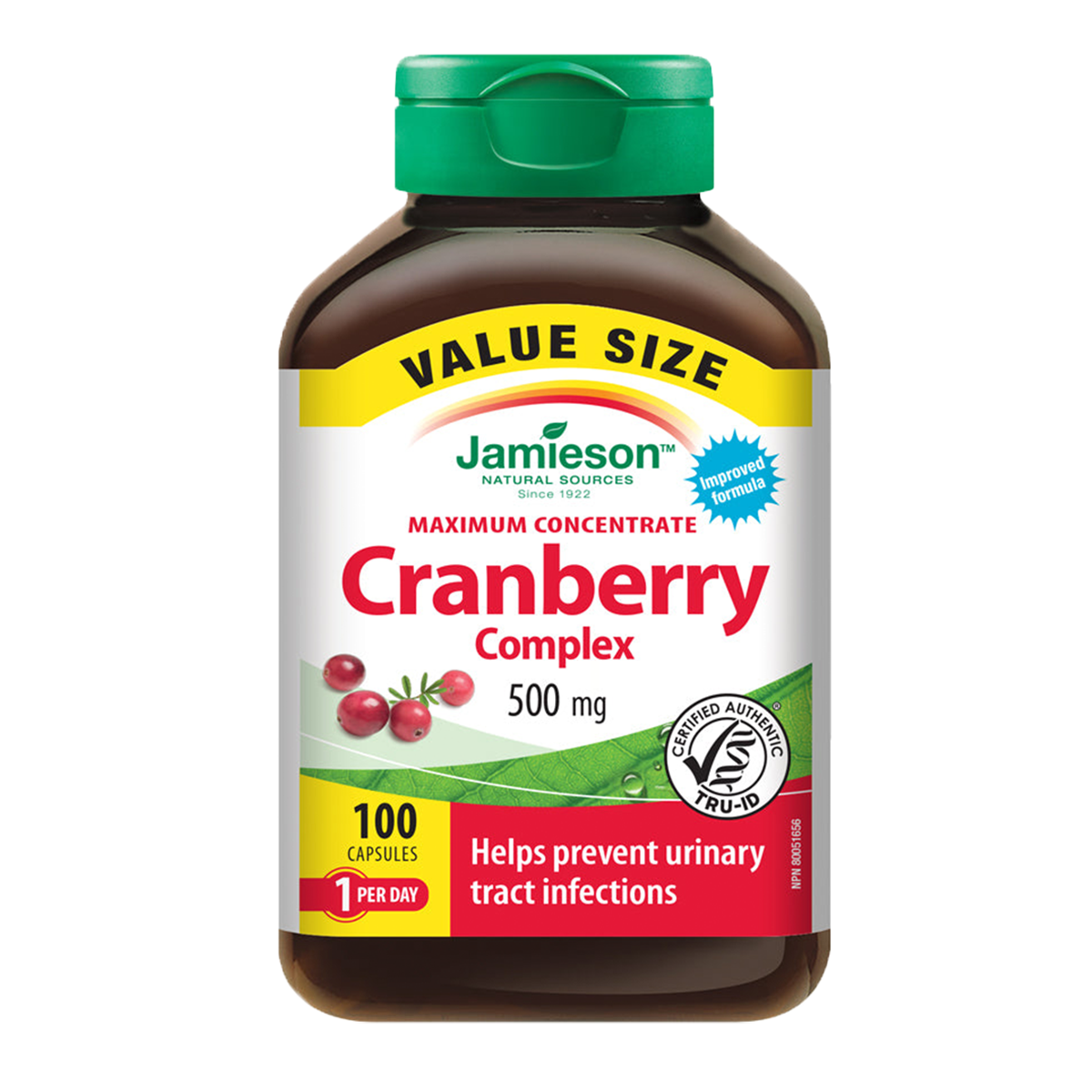 Jamieson Maximum Concentrate Cranberry Complex is comprised of 450 mg of cranberry and 50 mg of D-Mannose to Assist Wellness-Car-e and prevent urinary tract infections. Each capsule is derived from 500 mg of fresh, pure cranberry juice concentrate.