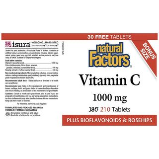 Natural Factors Vitamin C 1000mg Plus Bioflavonoids & Rosehips 180+30 Tablets