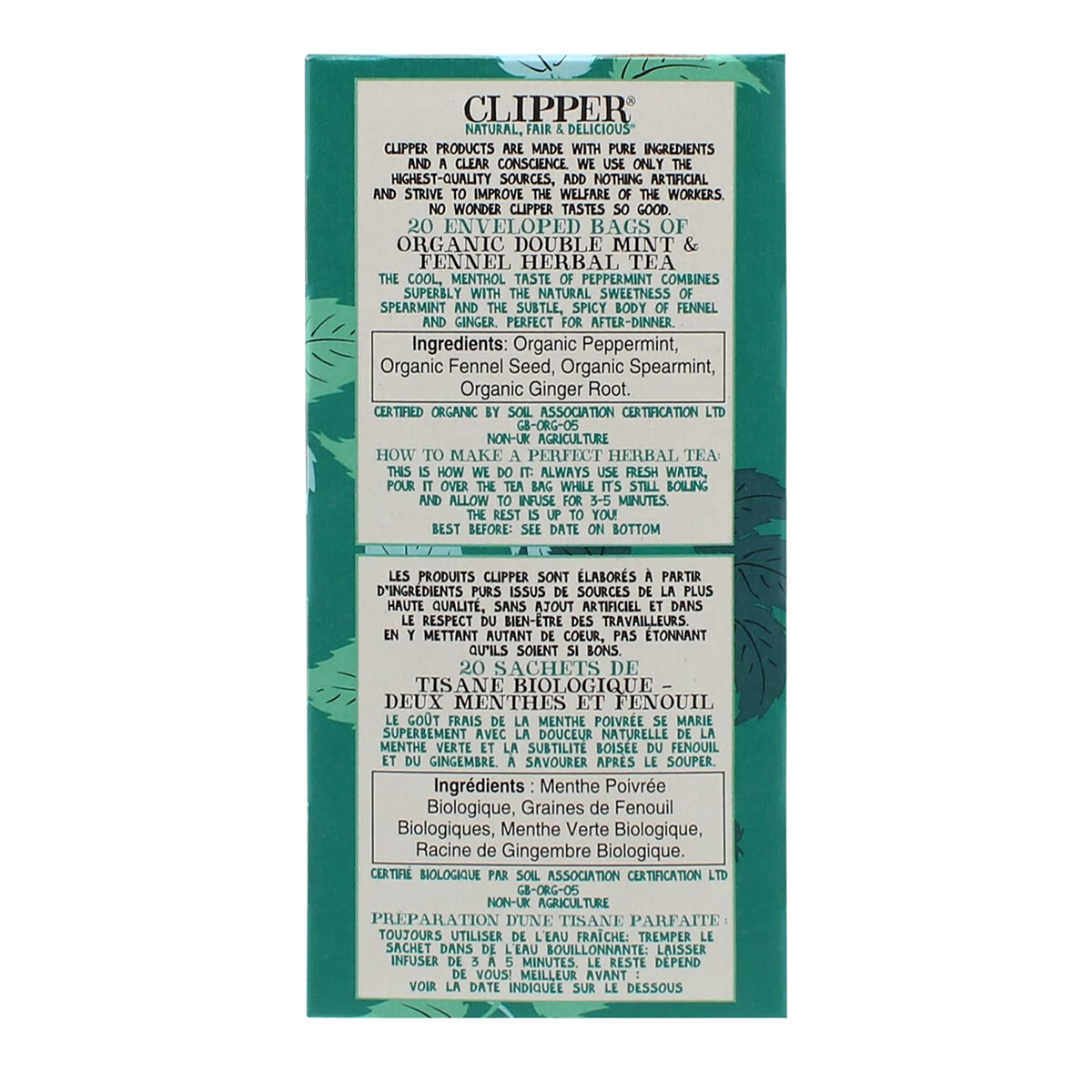 The refreshing menthol taste of peppermint blends perfectly with the natural sweetness of spearmint and the subtle, spicy notes of fennel and ginger, creating a truly delicious 100% organic infusion. Ideal for after dinner.