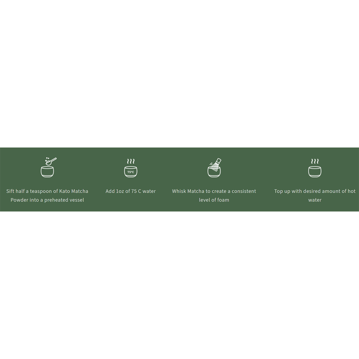 Sift half a teaspoon of Kato Matcha Powder into a preheated vessel.