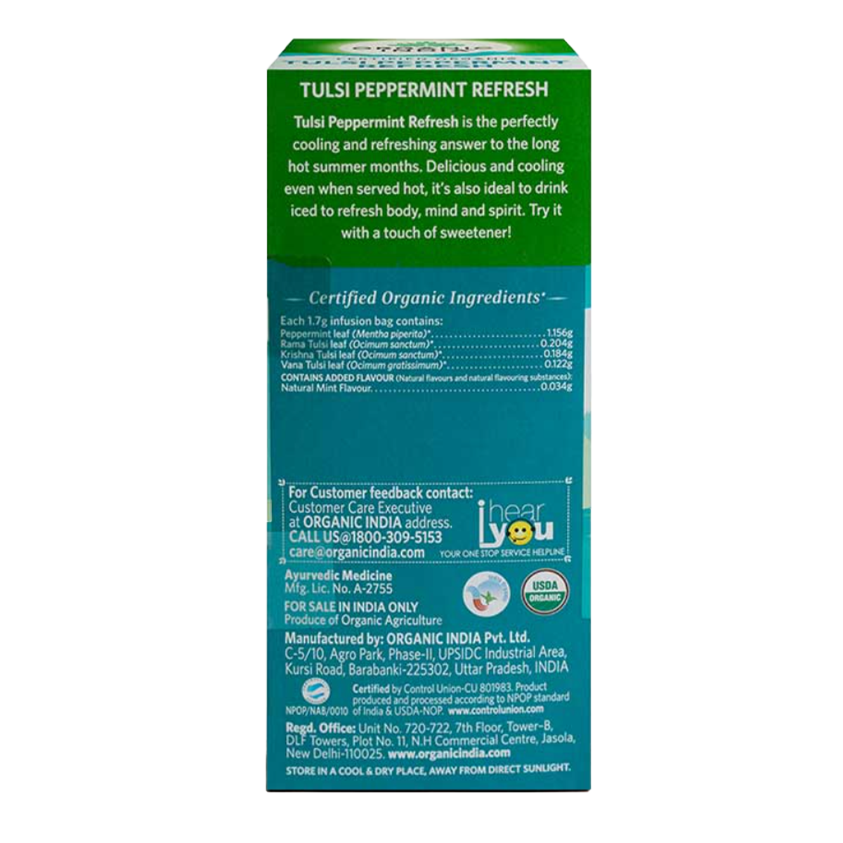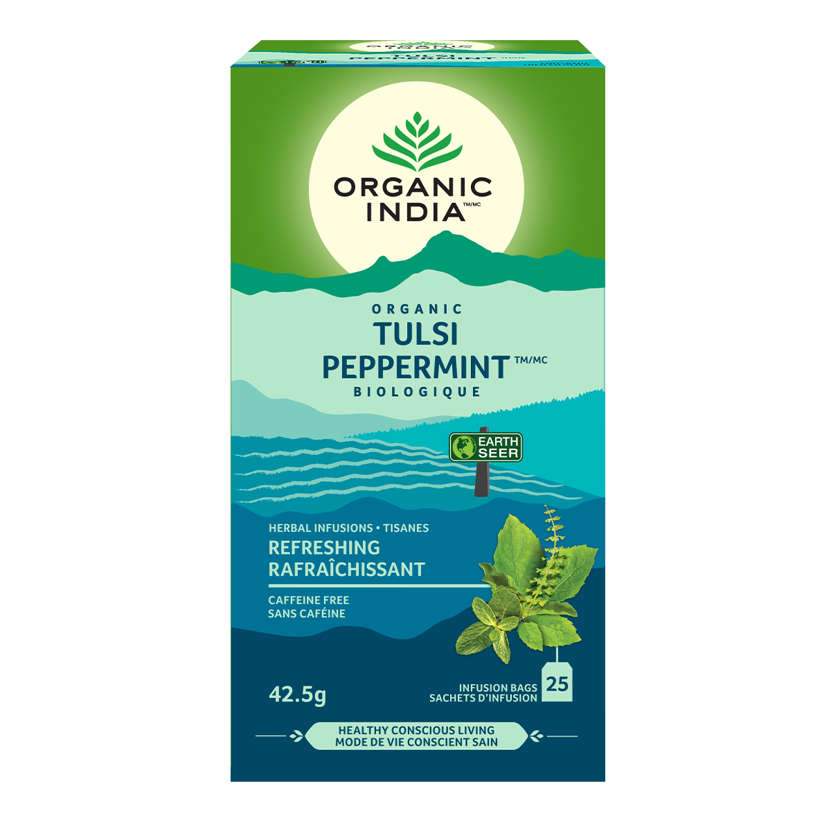 Organic India Organic Tulsi Peppermint Tea Caffeine Free 25 Tea Bags
