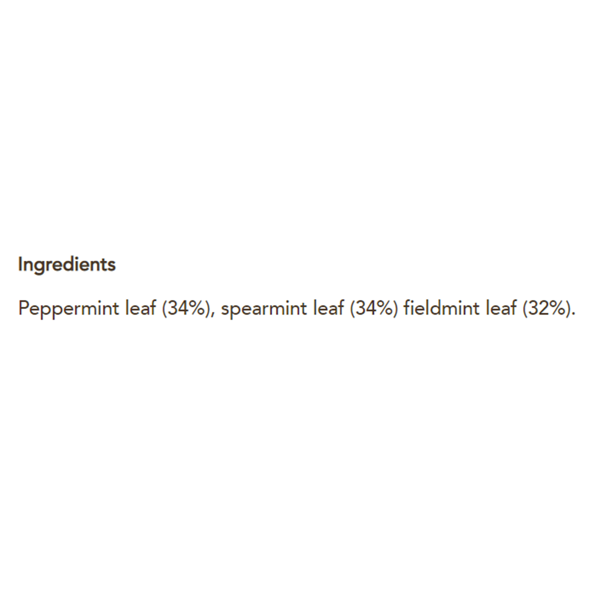 Peppermint leaf (34%), spearmint leaf (34%) fieldmint leaf (32%).