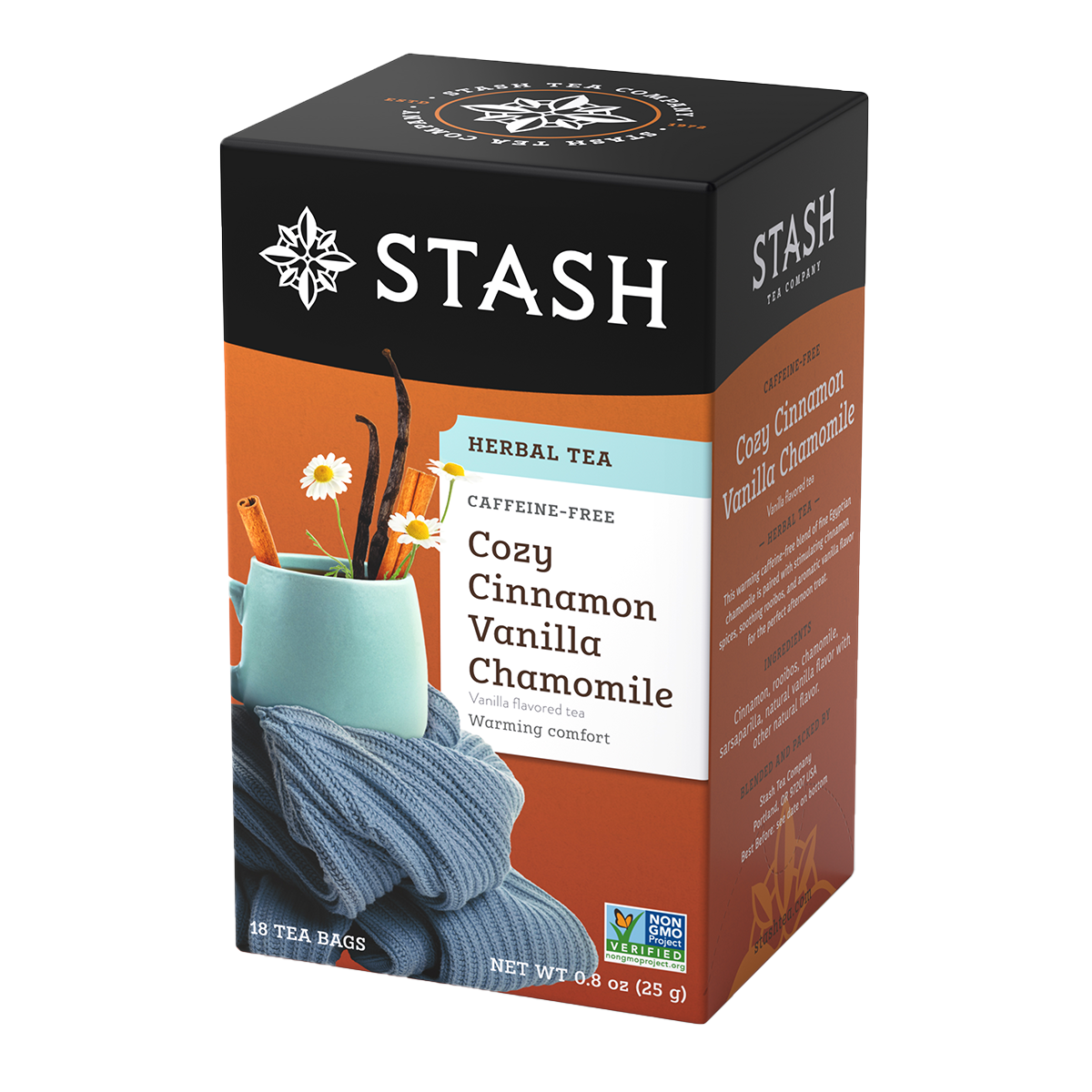 Cinnamon, rooibos, chamomile, sarsaparilla, natural vanilla flavor.