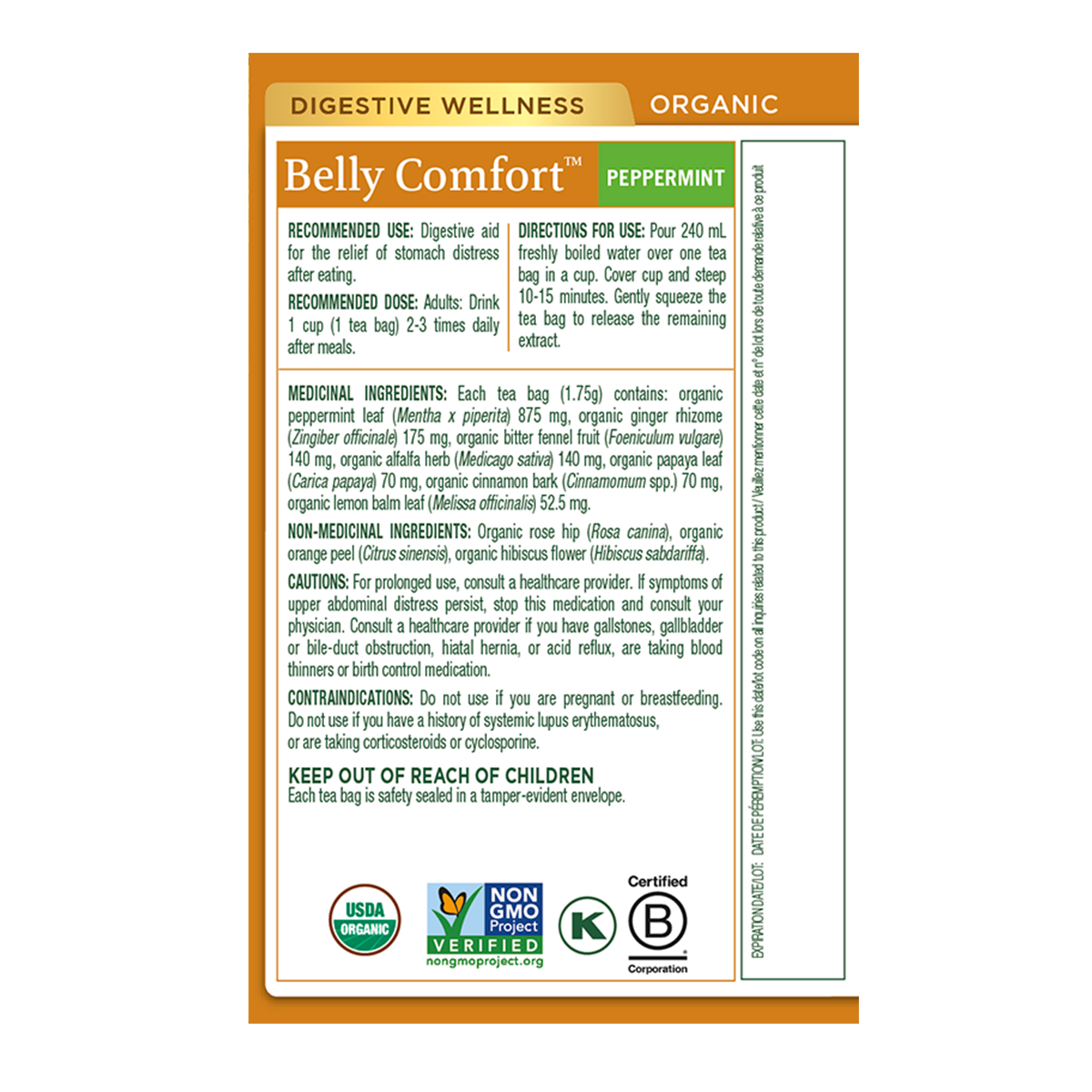 I can't say enough good things about this tea. It's my go-to for soothing my stomach after meals. Knowing that it's organic and non-GMO gives me confidence in the product. Highly recommend to all tea lovers.