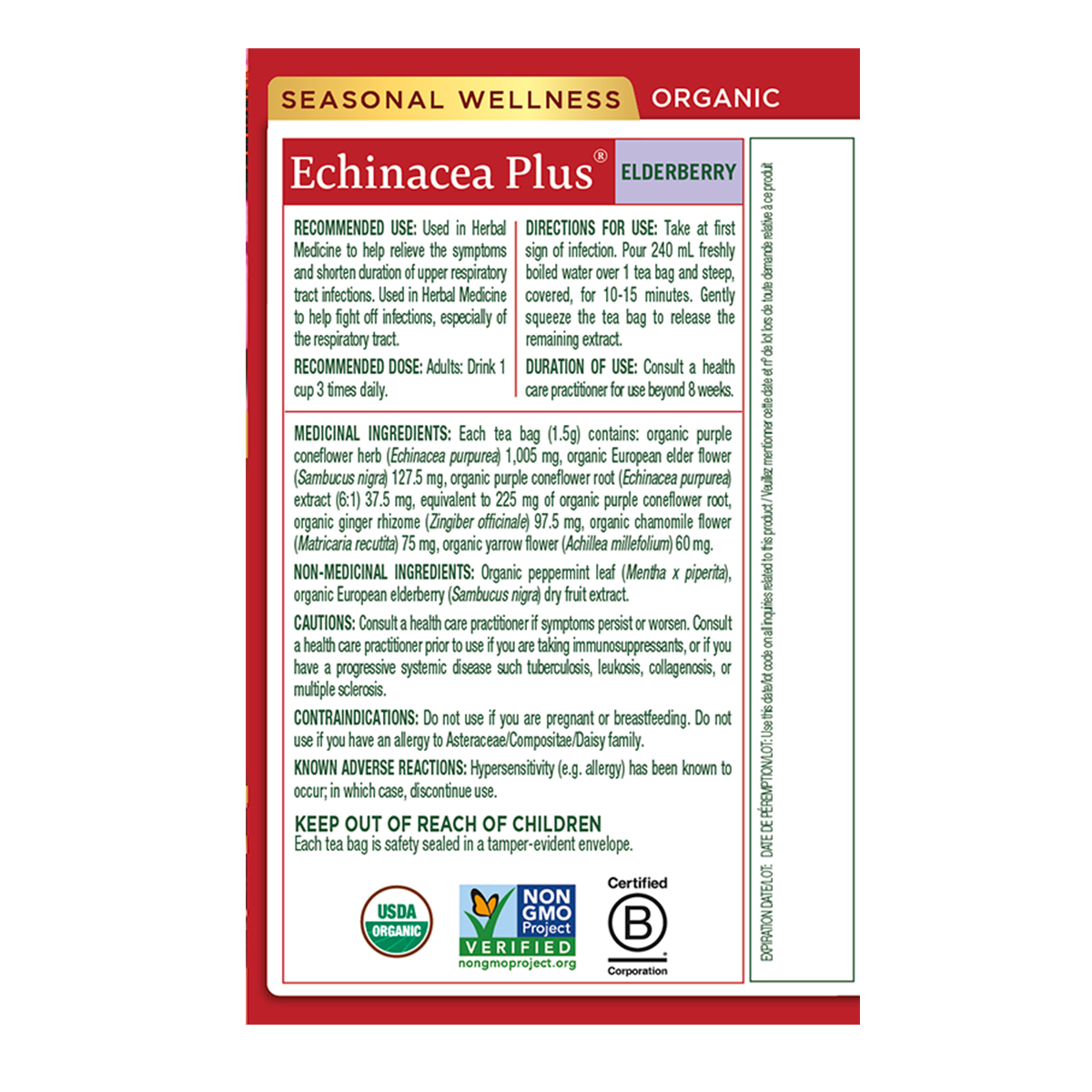 Organic peppermint leaf (Mentha x piperita), organic European elderberry (Sambucus nigra) dry fruit extract.