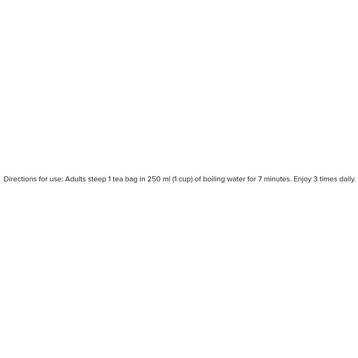 Adults steep 1 tea bag in 250 ml (1 cup) of boiling water for 7 minutes. Enjoy 3 times daily.