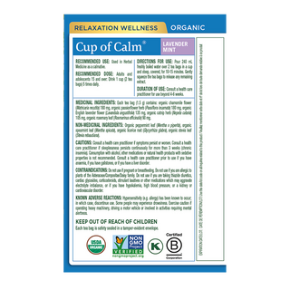 Traditional Medicinals Organic Cup Of Calm Lavender Mint 16 Tea Bags